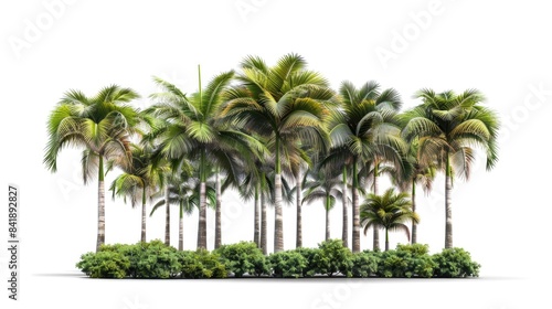 Group of palm trees surrounded by water and sandy beach, suitable for travel or nature-themed images