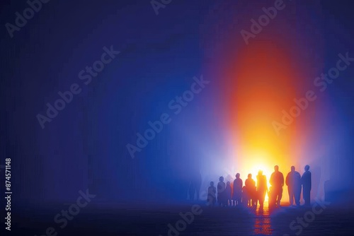 group, people, silhouette, glowing, light, background, dusk, dramatic, sunset, evening, shadow, contrast, warm, tone, peaceful, serene, tranquil, harmony, oneness, community, gathering, abstract, photo, contemporary, modern, artistic, minimalist, vibrant, dynamic, expressive, detailed, texture, pattern, elegant, stylish, refined, sophisticated, unique, creative, imaginative