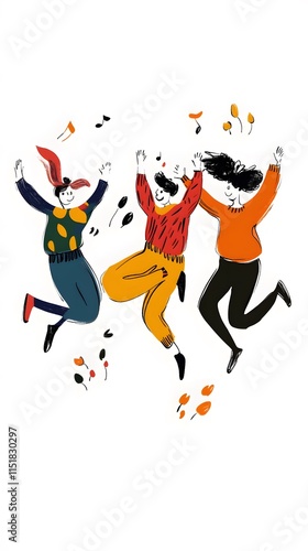 Group of people jumping for joy, a flat vector illustration on a white background
