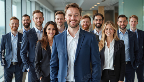 business, team, professional, smiling, confident, office, man, woman, suit, group, corporate, workplace, leadership, teamwork, modern, diversity, success, portrait, friendly, collaboration, business attire, motivation, career, interaction, oneness, cheerful, contemporary, environment, copy space