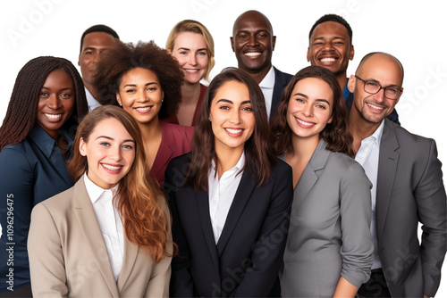 Group of smiling business interacial people in suits on transparent background. Groups of people in business attire. Rich man and women. Business leader. Startup boss. Isolated image. PNG cut out.