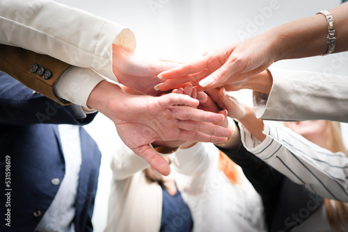 Group of teamwork person holding hands strength collaboration concept. Business partnership success together team. Group of people unity friendship, circle connection.