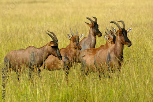 Group of topis in long grass, Masai Mara Game Reserve, Kenya