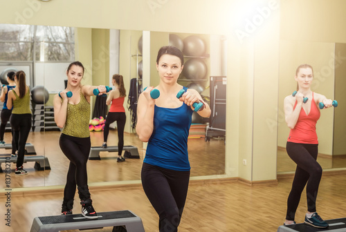 aerobic, athletic, beautiful, beauty, body, class, club, concept, exercise, face, fight, fit, fitness, flexibility, group, gym, health, healthy, lifestyle, loss, many, morning, motion, muscular, people, honed, person, platform, portrait, shaping, sport, sportive, activewear, sporty, step, stretch, team, teamwork, together, training, warmup, weight, wellness, woman, woman, physical exercise, young, dumbbell