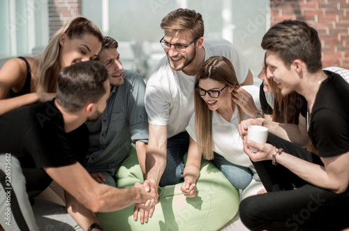office, bright, new, handshake, gesture, greeting, group, young, business, floor, meeting, creative, strategy, person, teamwork, working, team, brainstorming, project, startup, professional, idea, casual attire, discussion, people, woman, occupation, cooperation, entrepreneur, corporate, men at work, plan, together, smiling, design, co-worker, diverse, work, co-worker, businessman, male, man, workplace, discussing, talking, studio, modern, communication, looking, document