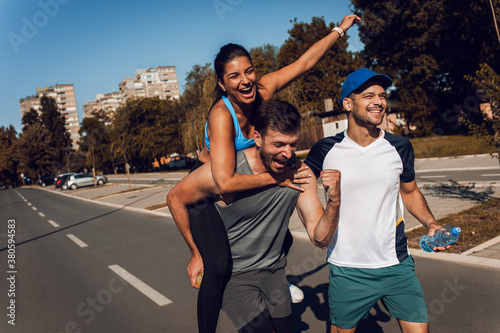group, young, people, running, morning, city, three, street, fitness, physical exercise, training, sunset, sport, urban, road, friendship, endurance, fit, determination, well-being, caucasian, active, adult, wellness, female, motion, outdoors, athletic, male, runner, team, jogging, exercise, man, athlete, lifestyle, healthy, woman