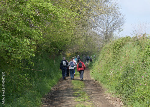 Groupe de randonneurs seniors dans la campagne en Bretagne