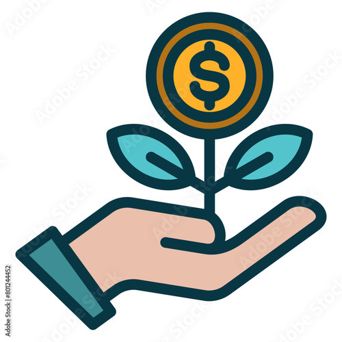 growth, money, dollar, hand, investment, vector, symbol, set, design, business, icon, outline, colours