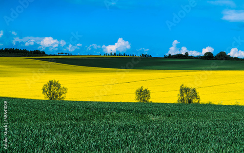 Grüne und gelbe Felder im Frühling