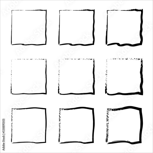Grunge frames vector set. Handdrawn square frame. Set of design elements. Vector black painted squares. Dirty grunge design frames