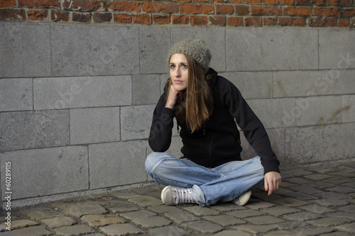 lifestyle, girl, woman, youth, cute, person, single, brunette, beauty, female, people, attractive, adult, negative, social, homeless, poverty, depression, sad, stress, dirty, teenage, frustration, distraught, worried, messy, hopeless, society, trash, miserable, anxiety, hat, crime, vandalism, mischief, hispanic, dark, moody