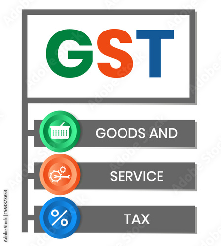 GST - Goods and Service Tax acronym, business concept background. Vector illustration for website banner, marketing materials, business presentation, online advertising.