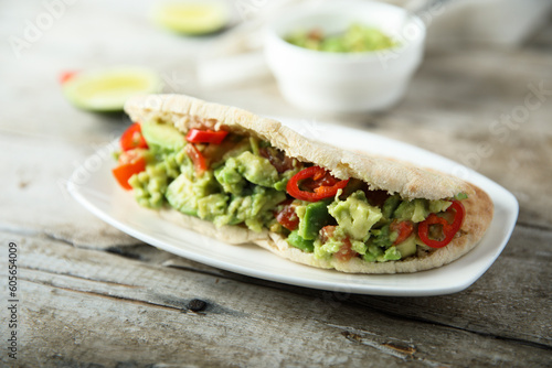 food, sandwich, guacamole, chili pepper, pepper, green, vegan, paste, dip, smashed, salsa, prepared, fruit, indoor, dish, chopped, omega, mixed, traditional, closeup, spicey, delicious, toasted, cilantro, ingredient, mexico, piece, wooden, healthy, toast, widener, bread, avocado, mexican, snack, sauce, lunch, clothes, board, meal, raw