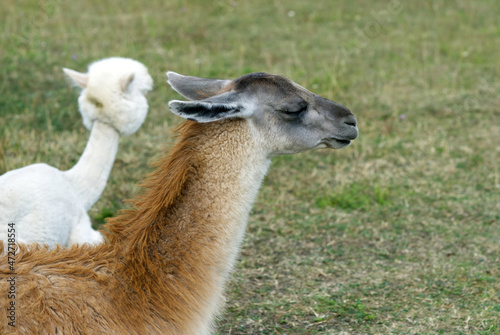 Guanaco lama exotic mammal wild animal Chewing Action