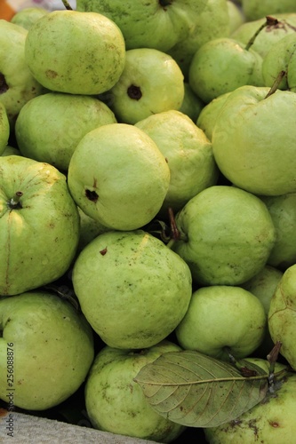 agriculture, asian, background, bunch, closeup, food, fresh, freshness, fruit, green, group, guava, healthy, leaf, market, natural, nature, organic, plant, raw, ripe, street, sweet, thai, tropical, vitamin, white