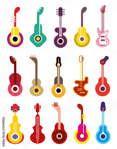 guitar, music, icon, vector, isolated, string, musical, instrument, musical instrument, acoustic guitar, electric guitar, symbol, illustration, many-coloured, colourful, white background, design