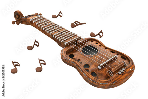 Guitar With Notes Scattered Around It, Musical Instrument, Clipart, Illustration, Isolated On Transparent Background.