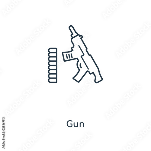 gun, icon, vector, line, trendy, weapon, crime, fire, handgun, outline, stroke, danger, handgun, bullet, bomb, simple, thief, thin, toxic, death, criminal, shot, fight, military, force, munition, machine, revolver, army, conflict, lined, exploding, white, armed, armoring, warfare, war, linear, background