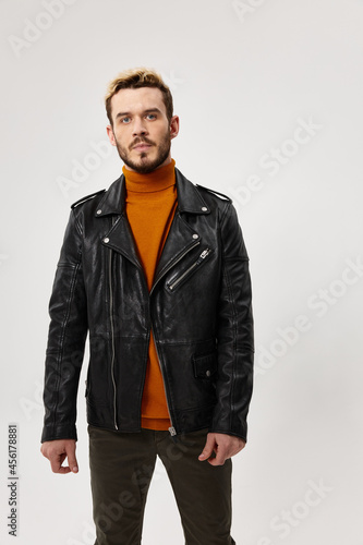 man, portrait, style, model, posing, orange, background, adult, caucasian, attractive, fashion, guy, studio, casual attire, photogenic, lifestyle, confident, fashionable, hair, sexy, shirt, standing, young, brown, casual attire, cheerful, clothes, clothing, hand, business, elegant, face, photogenic, indoor, isolated, jean, modelling, studio shot, stylish, white, look, looking, young adult, leather jacket, trend