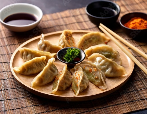 Gyoza dumplings, popular japanese and chinese food. Generated image