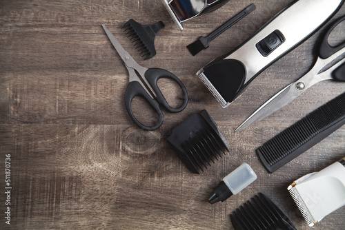 Hair clippers and hair trimmer with comb and scissors.