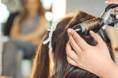 adult, attractive, beautiful, beauty, care, caucasian, chestnut, client, closeup, colours, curling, fashion, female, girl, hair, haircut, coiffure, hairdresser, hair care, coiffure, iron, job, lifestyle, long, people, person, pretty, professional, salon, service, hairdresser, treatment, woman, work, working, young