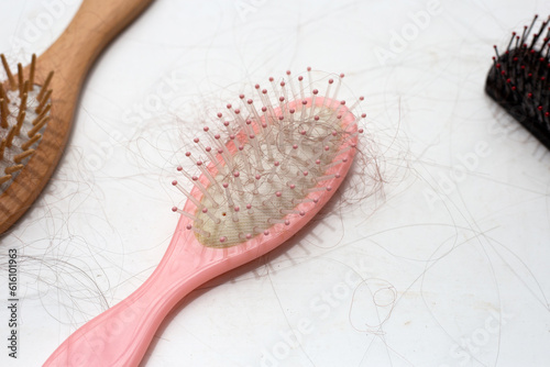 Hairs loss fall in combs on white background.