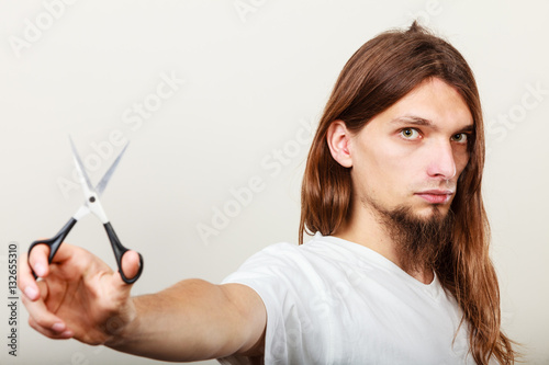 hairdresser, hairstylist, care, hair, scissors, barbershop, saloon, cut, hair care, hairdresser, man, showing, pensive, present, change, long, coiffure, coiffure, brown, cutting, create, constructed, men at work, boss, help, serious