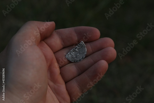Half of a medieval european silver coin in hand
