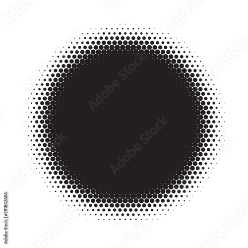 Halftone circle frame background set. Round border Icon using halftone random circle. Grunge circular stain. Vector illustration.