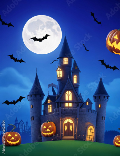 halloween, night, moon, castle, house, bat, pumpkin, haunted, holiday, tree, skittish, autumn, horror, silhouette, scarey, illustration, vector, bat, cartoon, dark, october, black, party, cemetery, evil