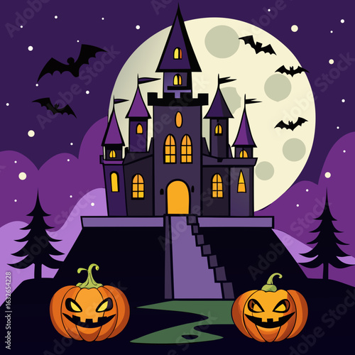halloween, moon, night, house, castle, bat, pumpkin, autumn, silhouette, vector, haunted, holiday, tree, horror, illustration, scarey, skittish, dark, cartoon, party, black, bat, design, october, cemetery