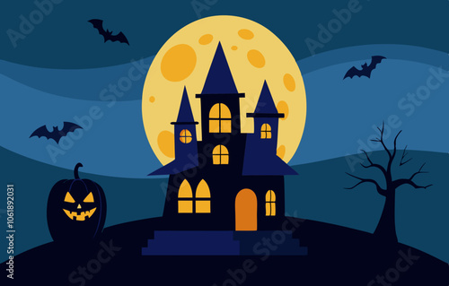 halloween, moon, night, house, bat, castle, haunted, tree, autumn, illustration, vector, holiday, silhouette, scarey, dark, pumpkin, horror, skittish, bat, cartoon, october, black, celebration, cemetery, art