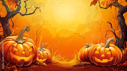 Halloween event background with charming upscale pumpkins. Premium illustration for banners, posters, greetings and Halloween celebrations