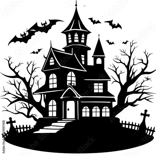house, haunted, halloween, silhouette, ghost, tree, castle, scene, vector, icon, design, isolated, art, illustration, party, building, cartoon, black, celebration, graphic, holiday, night, bat, luxury home, symbol, creepy, dark, darkness, fear, horror, mysterious, mystery, october, scarey, skittish