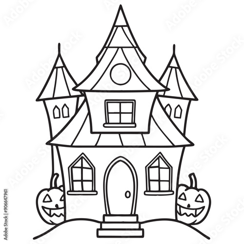 Halloween haunted house vector, black and white Halloween Haunted House coloring Page