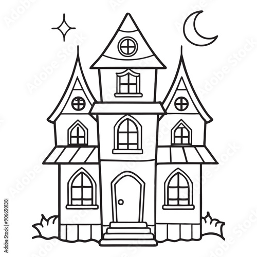 Halloween haunted house vector, black and white Halloween Haunted House coloring Page