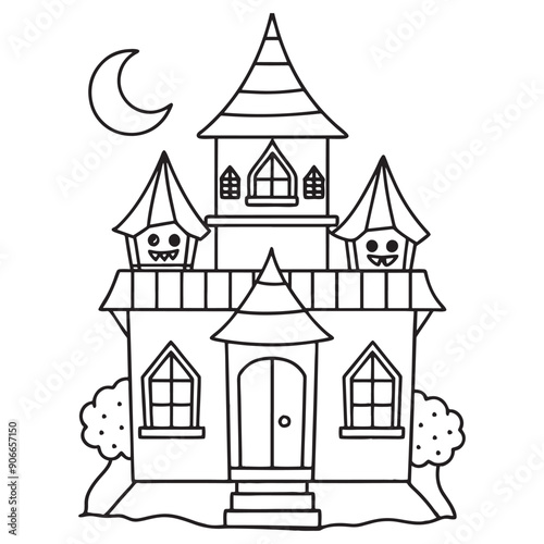 Halloween haunted house vector, black and white Halloween Haunted House coloring Page