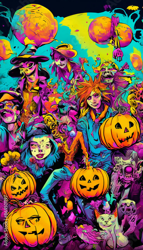 halloween, pumpkin, skull, mask, holiday, autumn, sorcerer, cartoon, illustration, night, moon, celebration, party, vector, horror, fun, card, skittish, bat, art, scarey, woman, october, funny, tree, fall, decoration