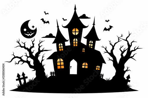 silhouette, halloween, black, vector, horror, background, home, illustration, cartoon, skittish, house, scarey, dark, evil, creepy, night, design, art, haunted, holiday, celebration, castle, ghost, bat, fear, fantasy, isolated, pumpkin, window, old, mystery, autumn, moon, october, decoration, building, spider, tree, graphic, element, cat, nature, web, darkness, orange, sorcerer, white, set, icon