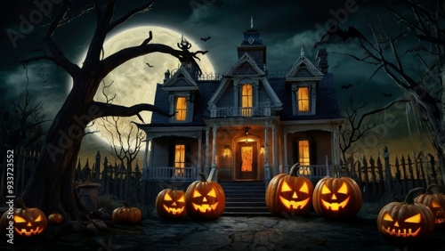 background, halloween, pumpkin, evil, haunted, event, jack, skittish, nightmare, devil, moonlight, ghost, moon, bat, party, candle, illuminated, full moon, landscaped, colourful, midnight, magic, darkness, vignetting, smile, death, shock, silhouette, autumn, night, holiday, horror, illustration, celebration, tree, dark, scarey, october, design, black, orange, house, castle, cartoon
