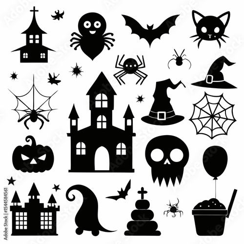 halloween, house, castle, moon, vector, night, cartoon, illustration, bat, silhouette, holiday, scarey, haunted, horror, skittish, set, cat, pumpkin, bat, autumn, art, ghost, tree, dark, black