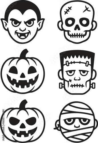Halloween Monster Face Icons | Zombie, Vampire SVG