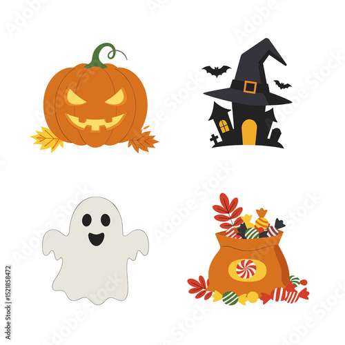 halloween, autumn, pumpkin, ghost, sorcerer, skittish, candy, celebration, night, minimal, haunted, party, scarey, holiday, illustration, set, vector, bat, cartoon, horror, art, october