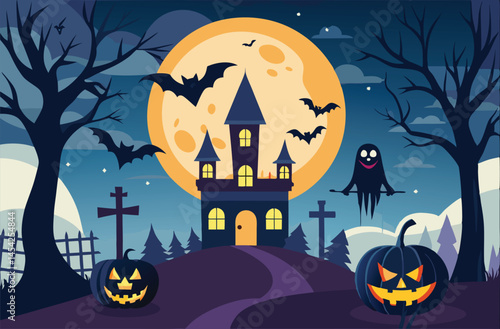 halloween, pumpkin, night, autumn, bat, moon, horror, holiday, vector, dark, skittish, illustration, tree, scarey, celebration, design, october, fear, black, sorcerer, orange, silhouette, evil, card, castle