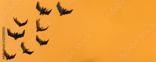 halloween, autumn, fall, holiday, event, bat, paper, black, 1, design, up high, overhead, topview, many, arrangement, collection, variety, assortment, background, solid, colours, orange, copy space, copy space, blank, border