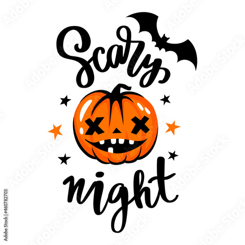 Halloween pumpkin face illustration. Cartoon vector character. Funny autumn symbol.