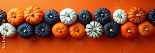 halloween, pumpkin, orange, black, white, autumn, fall, banner, decor, home, decoration, seasonal, holiday, festive, celebration, traditional, october, november, group, border, frame, negative space, bright, modern, design, still life, arrangement, overhead, view, copy, space, harvest, nature, vibrant, bold, colourful, vegetable, agriculture, treat, trick, scarey, skittish, corner, composition, lighting