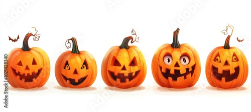 halloween, pumpkin, orange, face, vector, illustration, set, collection, expression, scarey, skittish, autumn, fall, decoration, design, holiday, cartoon, art, creepy, funny, smiling, grimacing, white background, graphic, digital, seasonal, october, festive, glowing, traditional, harvest, celebration, icon, symbol, carved, eerie
