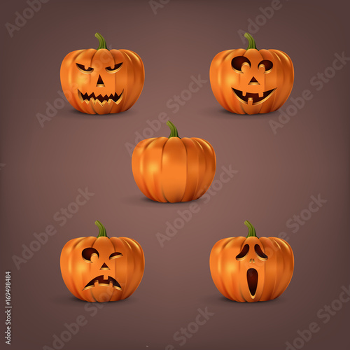 Halloween pumpkins set on dark background. Vector isolated halloween elements.